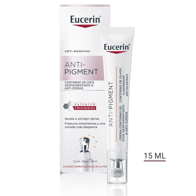 Eucerin Anti-Pigment Crema Anti-Ojeras combina potentes ingredientes activos que actúan de diferentes maneras para potenciar la luminosidad de la piel y reducir la hiperpigmentación, además de iluminar y suavizar el contorno de los ojos desde su origen.