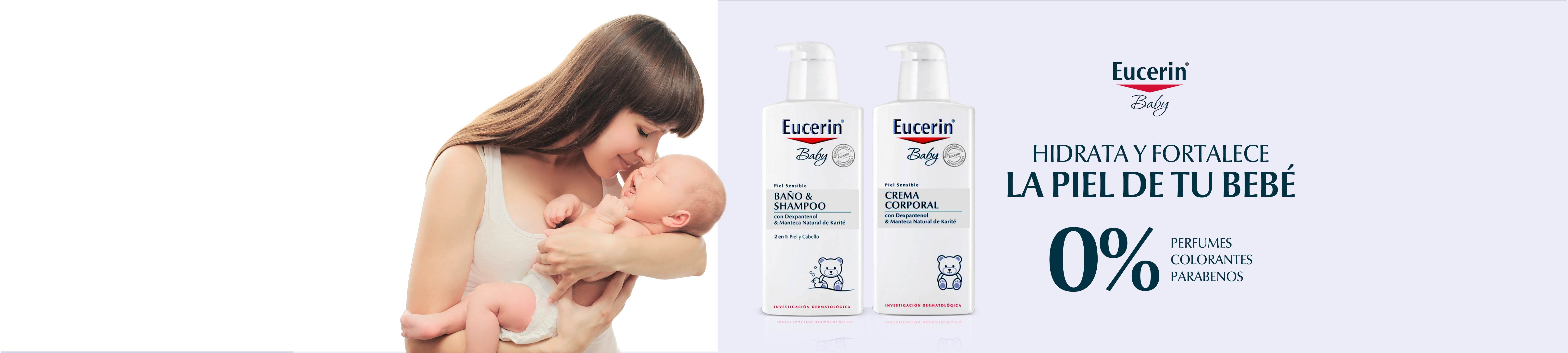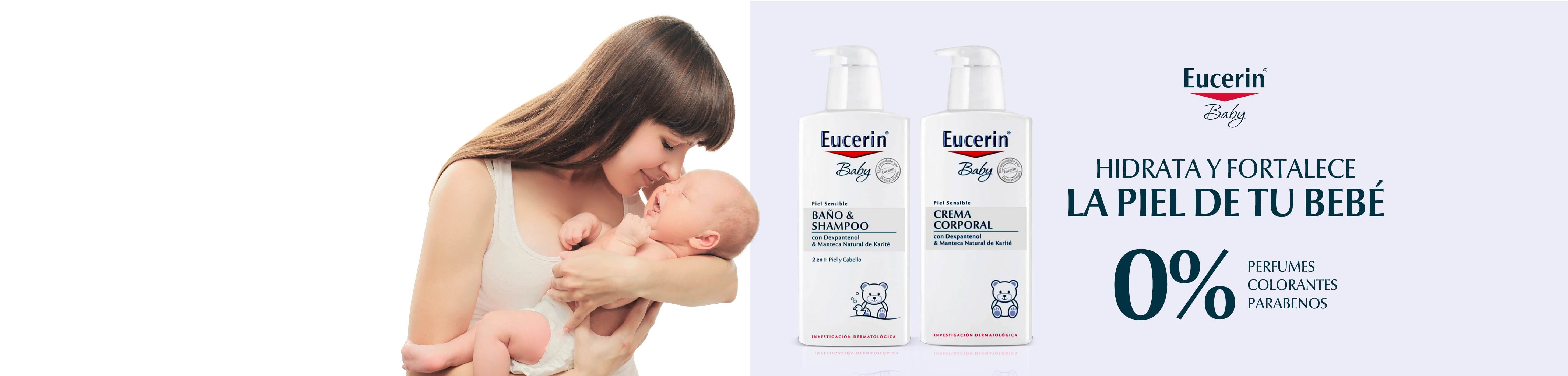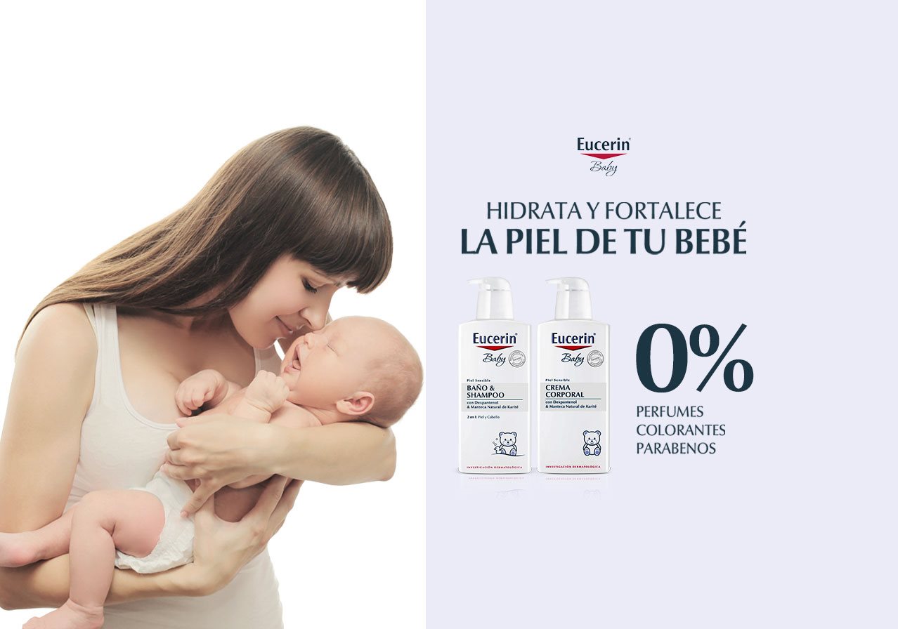 La línea Eucerin Baby contiene un shampoo y una crema corporal. Estos productos incluyen ingredientes probados y efectivos, libres de fragancias, parabenos y colorantes. Esta línea de productos, de acuerdo a pruebas clínicas, es adecuada y segura para el bebé, ayudándote a mantener la piel de tu bebé saludable y suave.