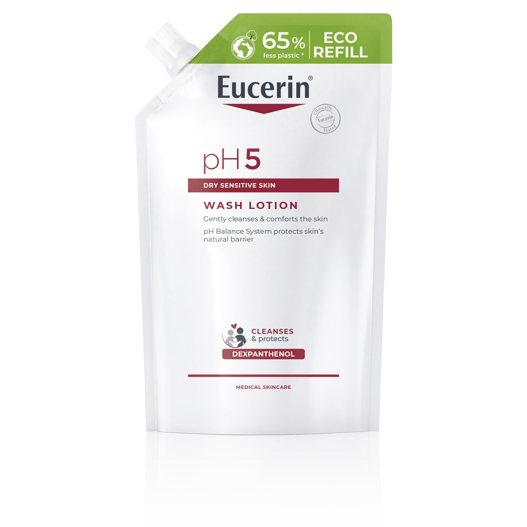 Los productos de limpieza y de humectación de Eucerin pH5 contienen ingredientes dermatológicos probados muy suaves ideales para la piel sensible y la piel sensible seca. Todos estos productos tienen excelente compatibilidad con la piel y la protegen del estrés ambiental diario. El buffer citrato pH5 que se encuentra en los productos Eucerin pH5 estabilizan naturalmente la película hidrolipídica de la piel. La glicerina y el dexpantenol protegen del resecamiento y apoyan la regeneración de la piel.