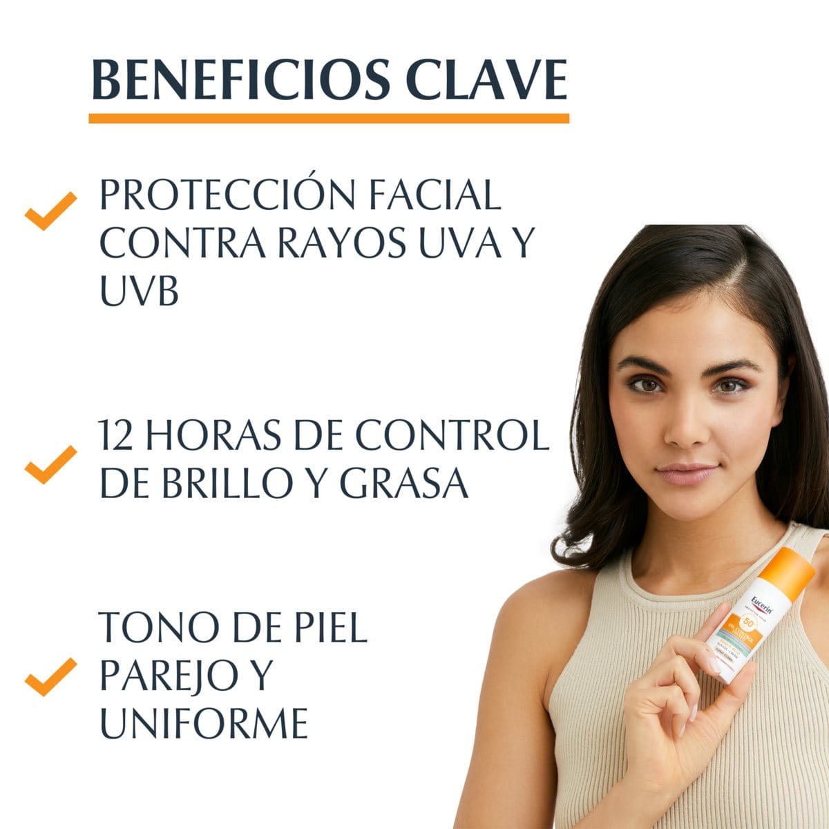 A algunas personas con piel grasa y propensa al acné les preocupa que el protector solar empeore sus síntomas y evitan por completo la protección solar. Los productos especialmente formulados, como Eucerin Sun Gel-Crema Oil Control FPS 50+, están diseñados para controlar las condiciones de la piel grasa y propensa al acné. La fórmula ultraligera tiene una tecnología Oil Control reguladora del sebo con L-Carnitina y micropartículas absorbentes.
